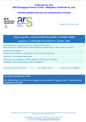 de contrôle sanitaire des eaux de consommation humaine